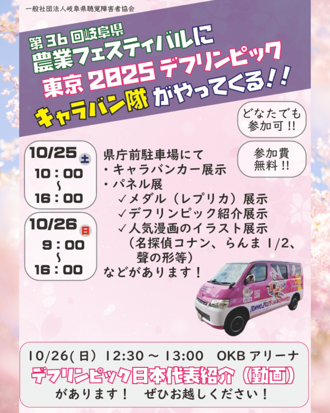 東京2025デフリンピックPRカー 岐阜県巡行日:10月21日(火)~10月26日(日) スケジュール 10月1日時点の情報です。 最新の情報 情報発信 キャラバンカーの様子を、YouTube・Instagramにて発信予定です。 YouTubeはこちら Instagramはこちら